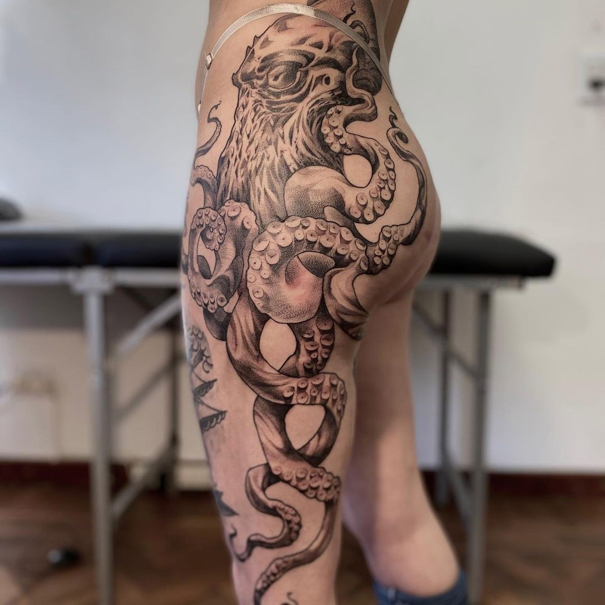 Inkden Tattoo Studio And Laser Removal Clinic Bio Mechanical Leg Piece Done By Shamack In One Long Full Day Session Shamack Has A Real Passion For This Style Of Work And Frequently